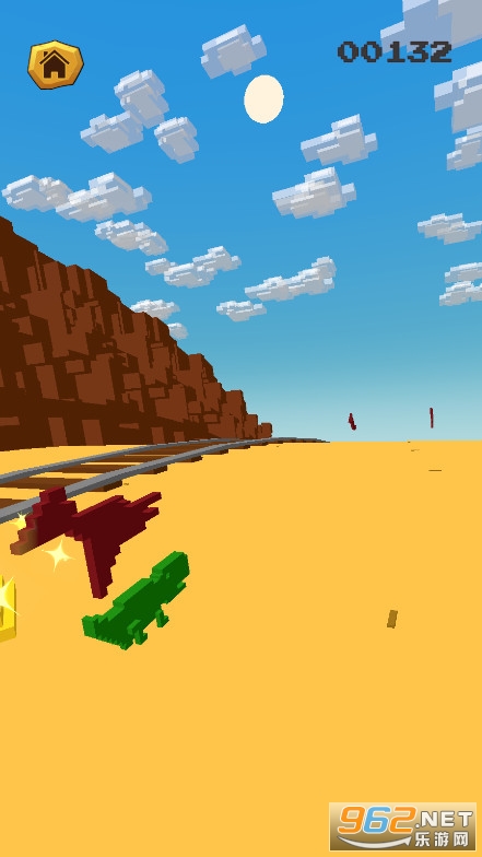 《恐龙穿越沙漠安卓版》是一款方块风格的跑酷敏捷闯关游戏,游戏中玩家要控制一头恐龙在沙漠里面奔跑,小心的躲避沙漠里面的仙人掌,同时还会有飞翔的翼龙,它们的飞行高度不一样,你要采取正确的措施来对付它们,不要被翼龙攻击,收集路上的金币。