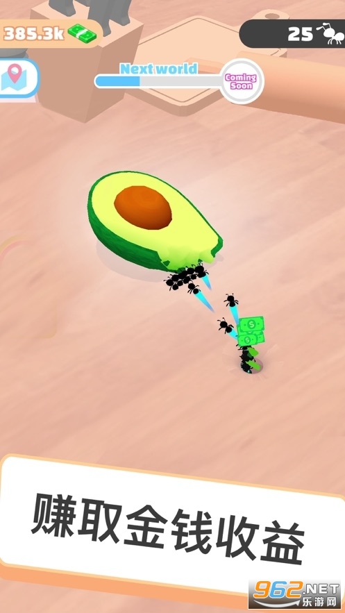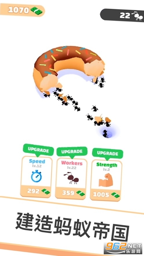 你将指挥不断扩大的蚁群,让他们吞噬更多的虫子,热狗,甚至是飞机!让你的蚂蚁大军吞噬眼前的一切,从而为你赚得可以使用的奖励金币。