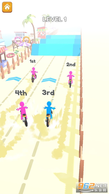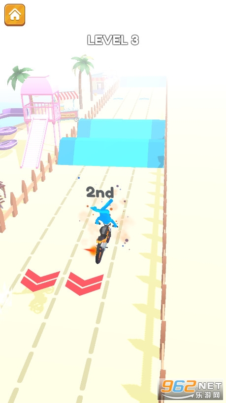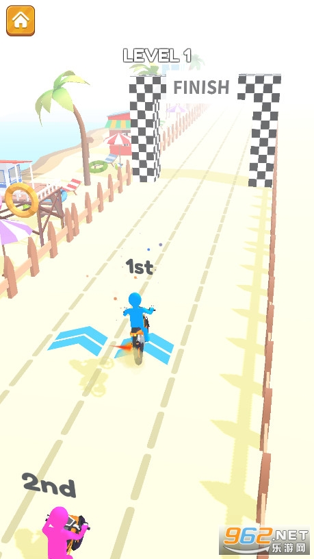 1.萌萌的画质效果,卡通的小摩托造型,玩起来有着现实的操作快感,随时开始这场独特的驾驶旅途。