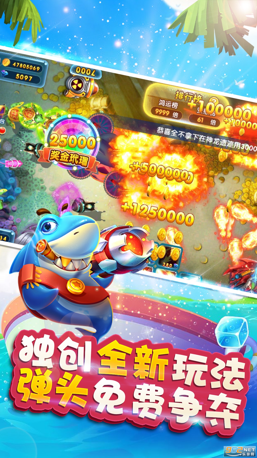6、特殊新鱼种,打鱼掉落新道具可兑换超强弹头,释放华丽特效,金币满屏爆!