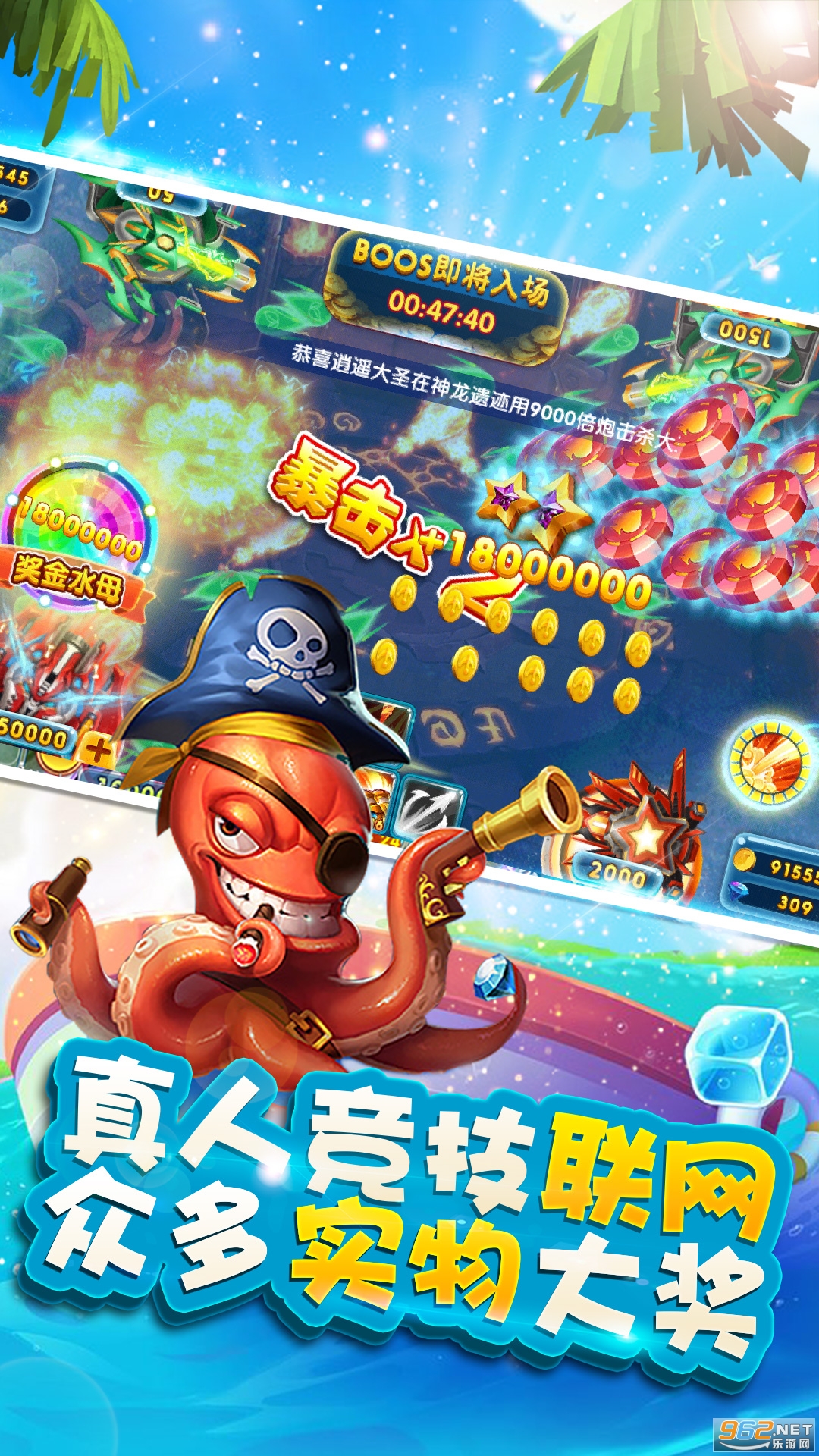 1、经典街机捕鱼玩法,4人同台,真人竞技捕鱼!