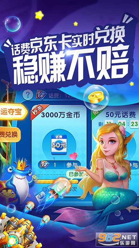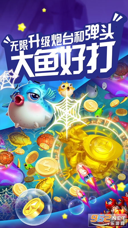 真实还原电玩城捕鱼刺激感,24小时不打烊,10倍,100倍,1000倍渔场变换无穷,BOSS花样百出,千炮捕鱼炮台助你爆满全屏金币。