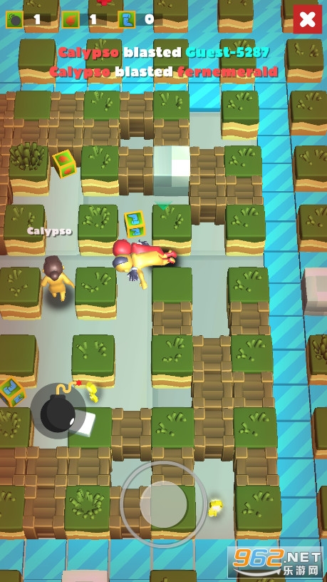 非常有意思的一款生存爆炸竞技游戏,在迷宫中求生,去布置炸弹炸开道路,也可以去炸死对手,生存圈越来越小,苟到最后你就是赢家