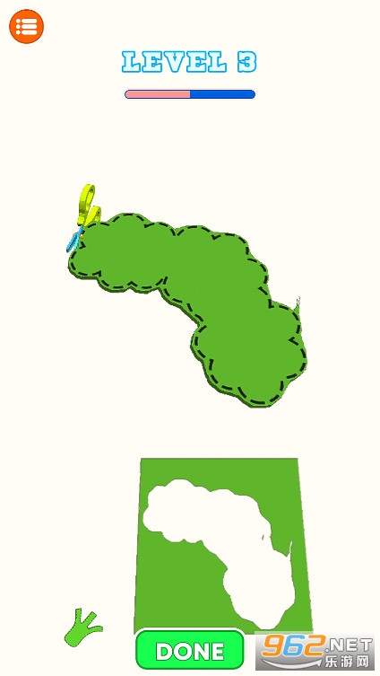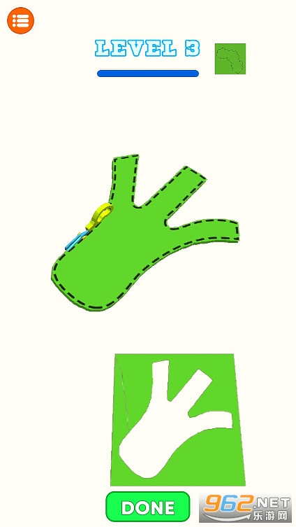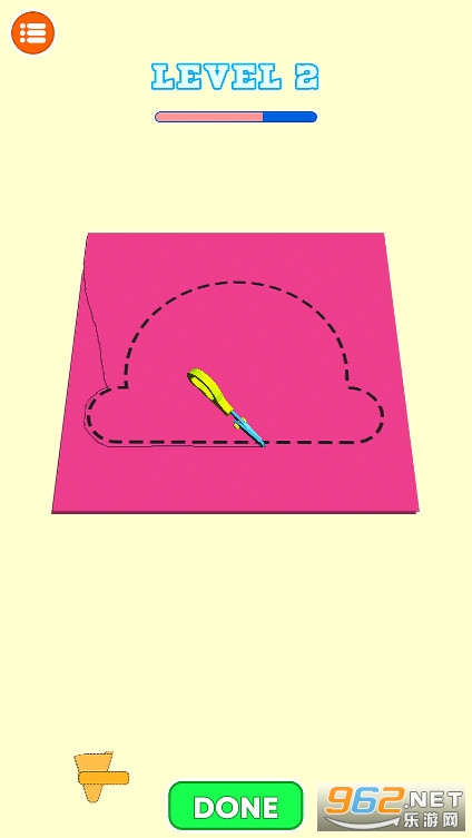 1、充满艺术感的手游,在关卡中,进行挑战,运用手中的剪刀,来切开图片中多彩的纸张,从而生成关卡所需要的图片。