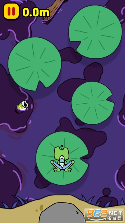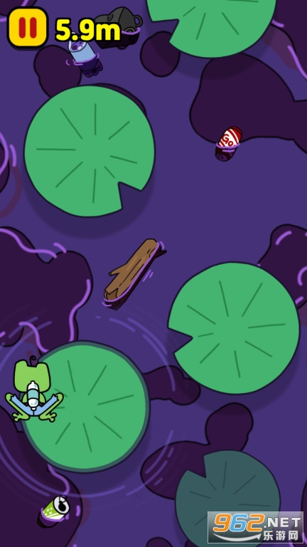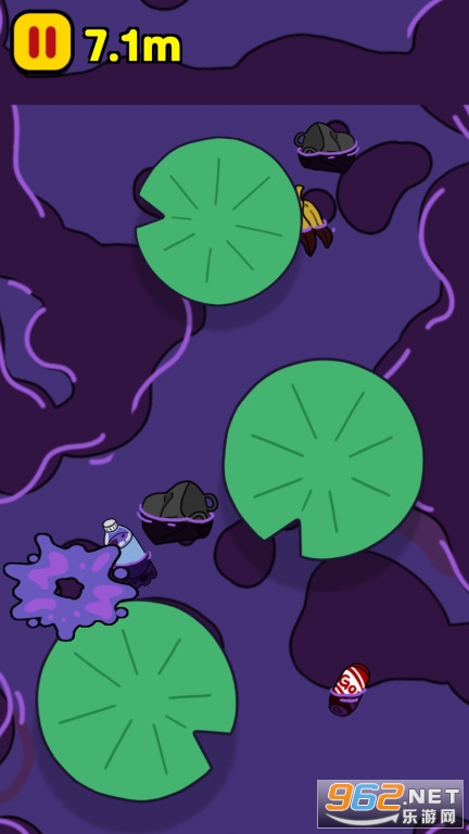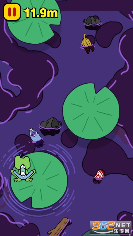 5、如果您掉入污水中,游戏直接失败,必须带领青蛙穿越被污染的池塘。