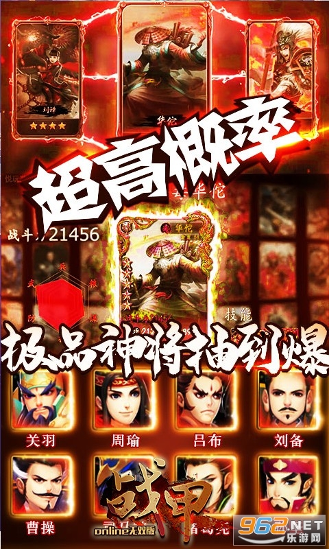 2、风靡神将,酷炫登场,知名画师制作的超精美卡牌、大师级的画面表现。