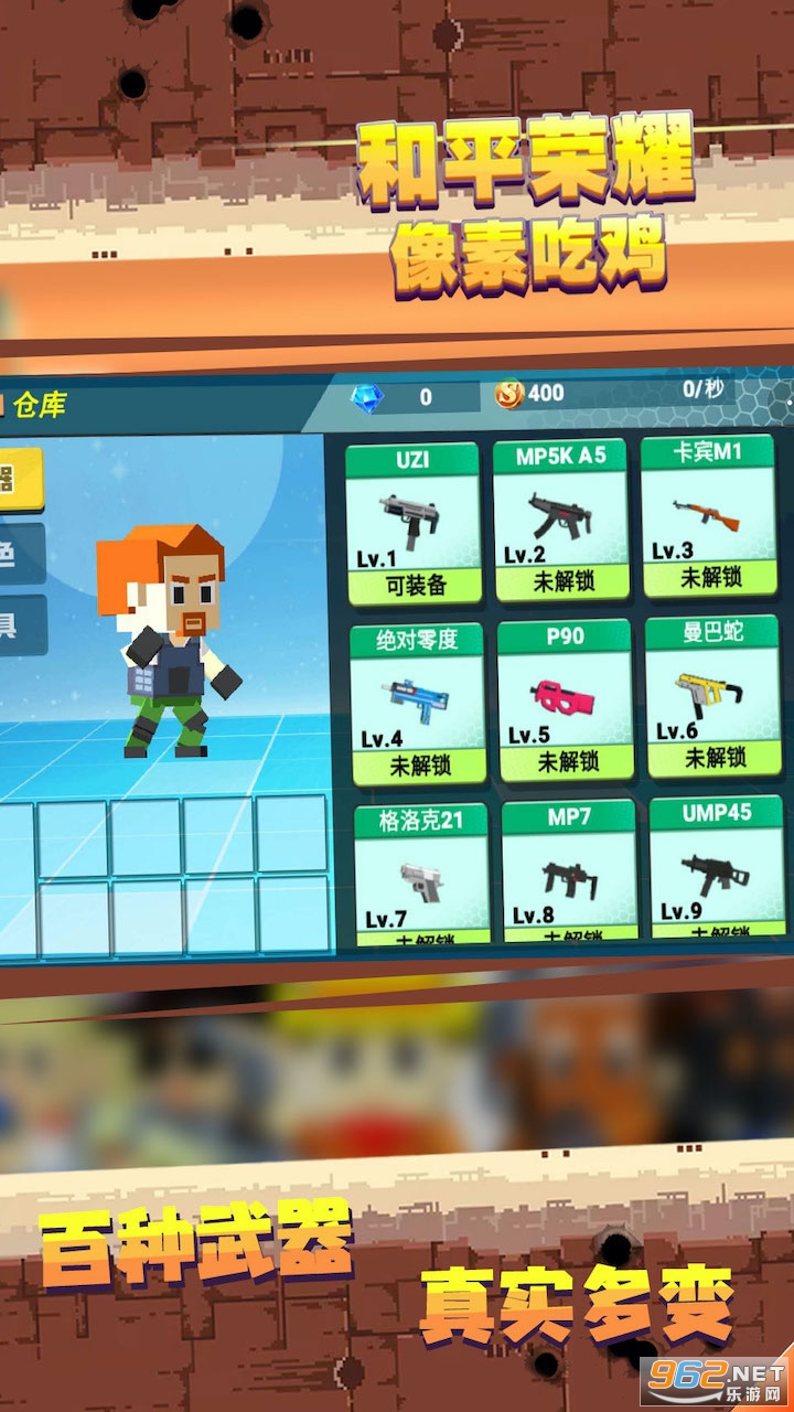 《和平荣耀像素吃鸡安卓版》是一款像素风格的3D射击手游,采用的第一人称视角,玩家可以解锁UZI、曼巴蛇、绝对零度、P90等众多的武器冒险,灵活走位,消灭全部的敌人,存活到最后,游戏有着团队排位、手雷战、狙击排位、大乱斗等模式,玩法丰富。