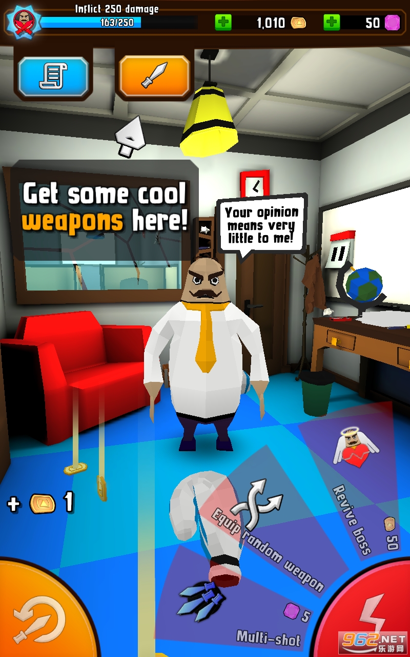 1、在这款游戏中尽情的发泄吧,你可以向讨厌的老板投掷各种武器。