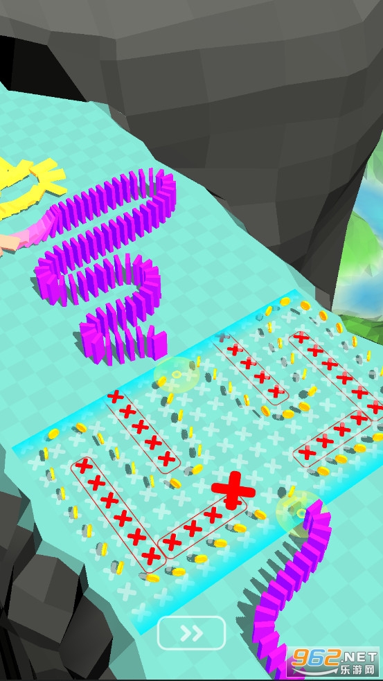 1、每个关卡用骨牌摆出不同的形状,玩家动脑思考,如何一次击倒所有牌。
