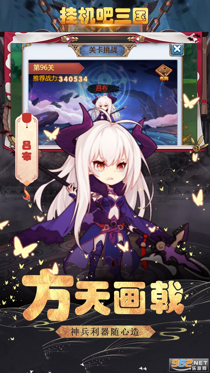 挂机吧三国每一个三国角色,都集物理、法术、单点和群秒等全方位技能于一身,让你能够在战场上所向披靡!极具特色的5倍攻速和10倍爆率,无比畅快的游戏节奏和华丽的战斗数值,带给你前所未有的激爽体验!游戏内不仅有无敌之塔、挖宝、副本等日常任务,而且有竞技场、武道会、王者争霸、帮战、跨服争霸等PK玩法,更有帮派、师徒、结婚等社交乐趣。上百种特色玩法,让你享受无穷的游戏魅力!