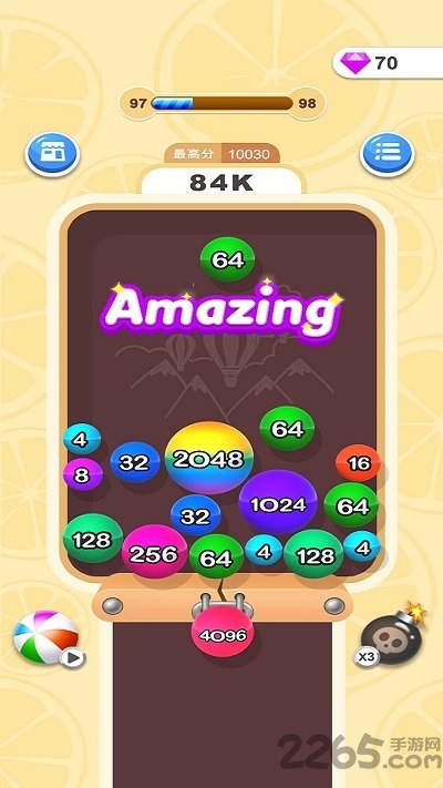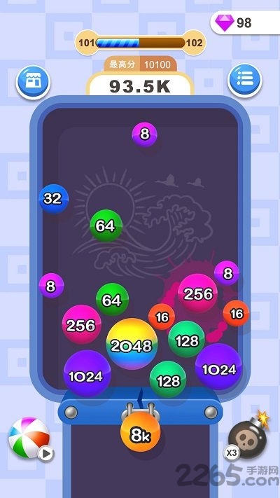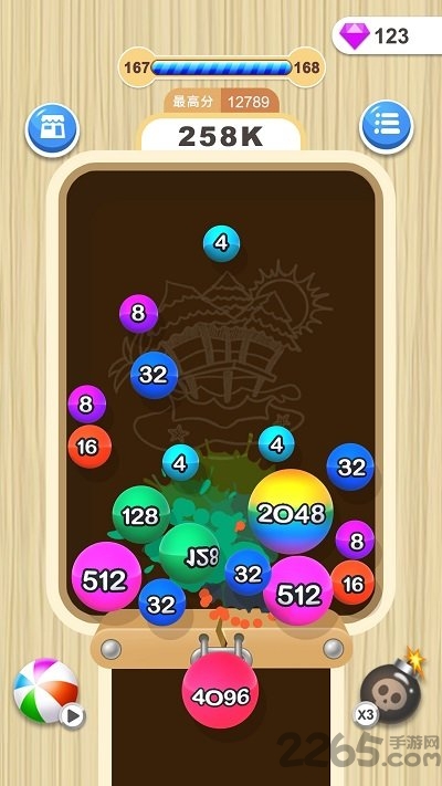 ·五颜六色的诸多球球,每个上面都有不同的数字,通过不断碰撞来合成大数字