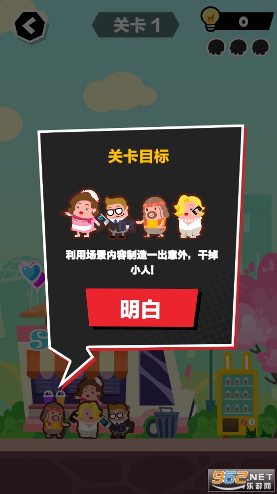 来《一百种倒霉法》成为见习死神,探索场景,利用道具和场景机关完成你的死神菜鸟任务!精致的动画效果,逗趣的游戏体验,超强成就感关卡设计,等你来大开脑洞!你的目标就是要在关卡中制造各种意外而且成功的杀死每一个人,能否成为真正的死神,就看你是否能够完好的贯彻在游戏当中的使命。你会是那个最倒霉的人吗?