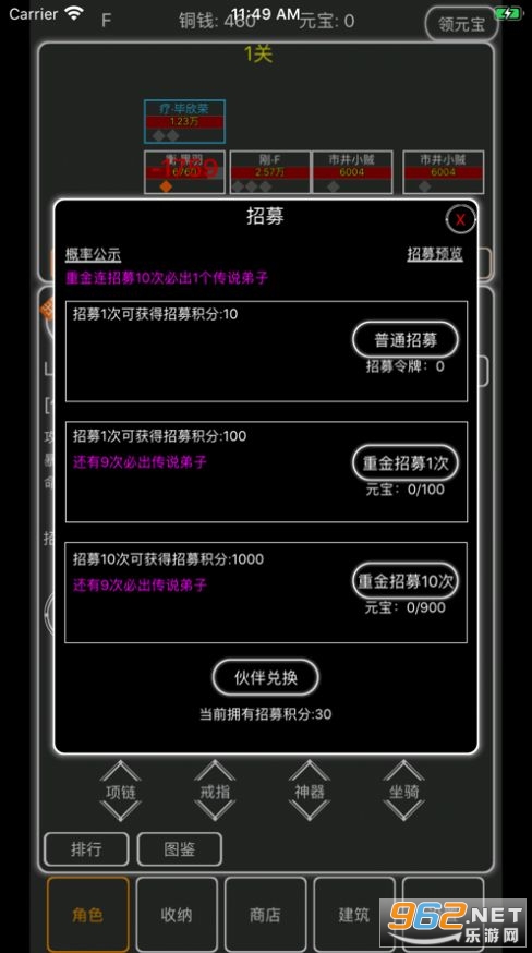 2:强大的实力建立在勤奋的练功,招募的伙伴及机缘上。权衡取舍资源提升自己吧!