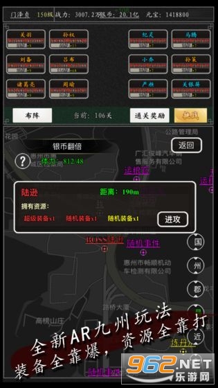 5、独创AR九州玩法,将游戏与现实结合,可以与其他玩家进行玩法互动,让你体验不一样的三国。