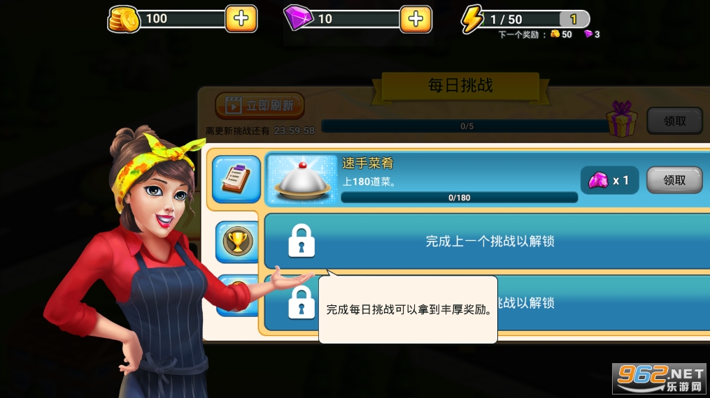 游戏内包含了每日挑战,成就挑战等等,丰富了日常的玩法与挑战选项,这也是快速提升餐车等级,赚钱金钱的额外方式