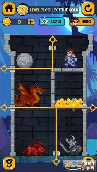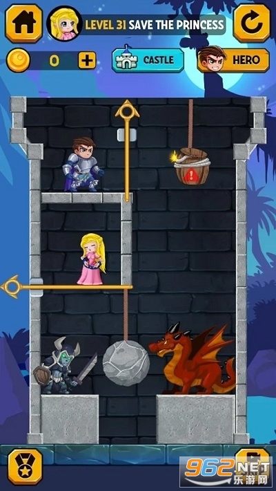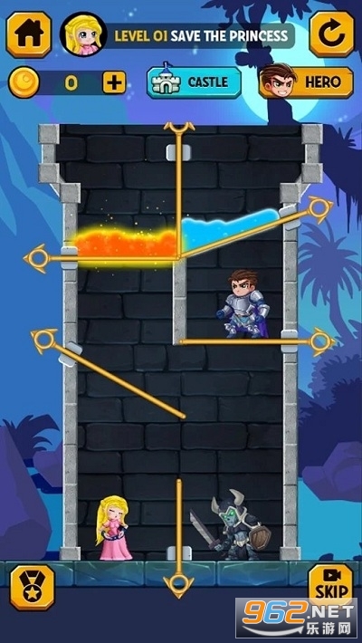 解决难题,拯救英雄收集所有宝藏,杀死怪物并拯救公主。 拉动销钉,将熔岩和有毒气体拉入其拼图单元,以摧毁敌人。 切断绳索以从可怕的怪物中救出公主。
