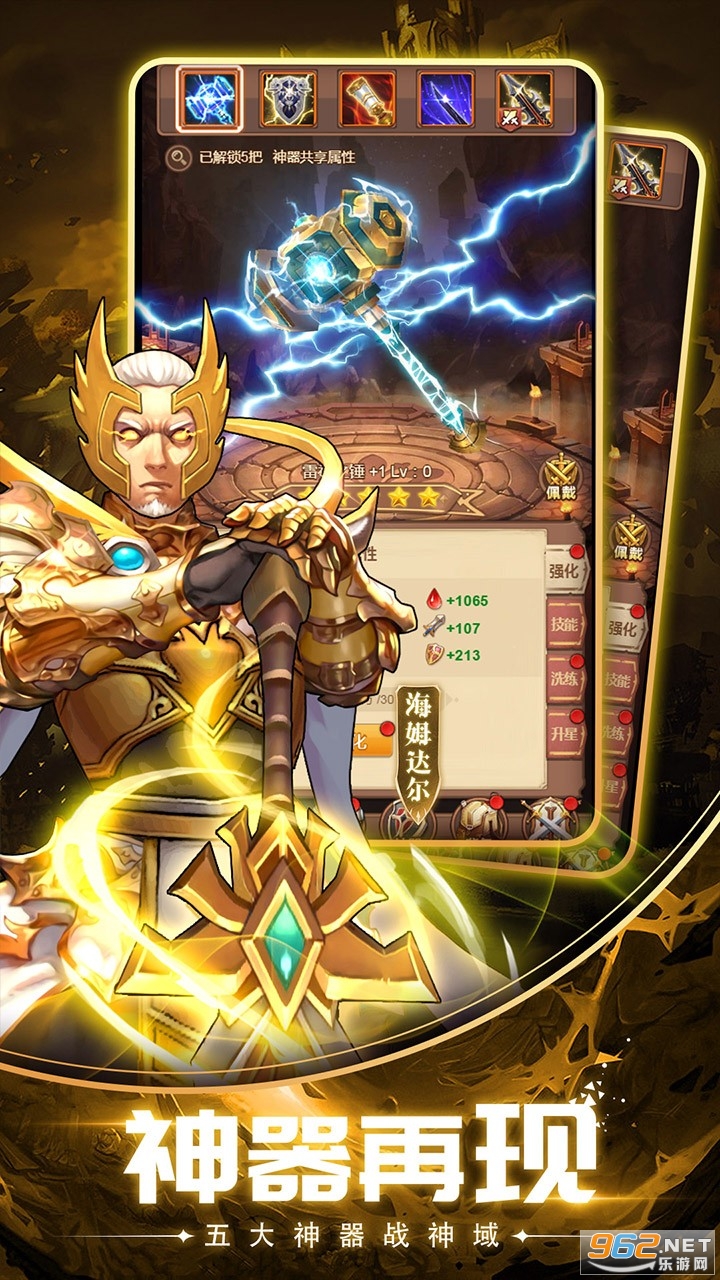 6、家收集到的英雄,可以通过装备强化、进阶、技能升级、神器强化等方式提升战斗力