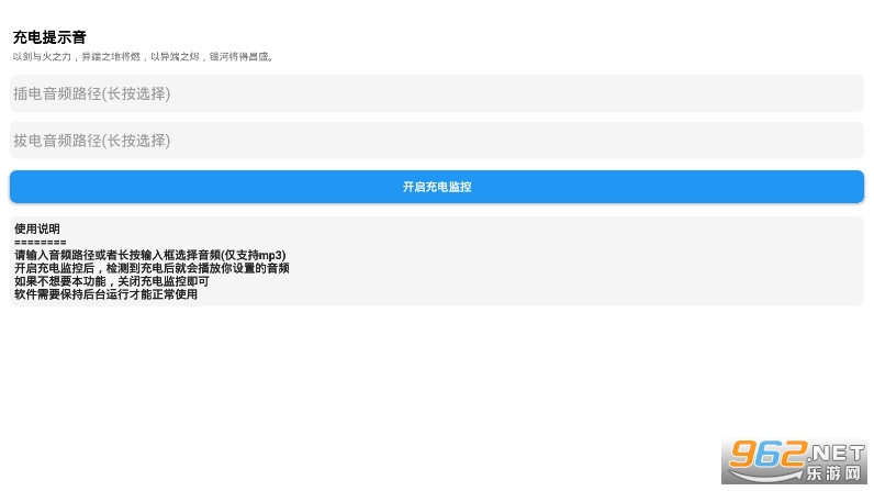 最近很多人玩的一款充电提示音软件,大家可以在这里选择各种各样的音频来设置成自己手机独特的充电提示音,玩法操作超级简单,也非常酷炫,赶快来下载吧!
