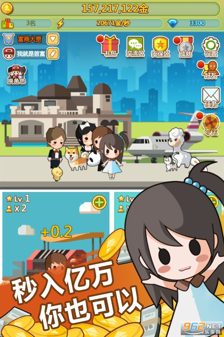 很好玩的一款游戏,奖励机制很多,每天都能领到钻石,功能也很全面,玩法也是多样化,通过自己的投资运转,就能玩转整个游戏世界,真有首富的体验和快感,好评。
