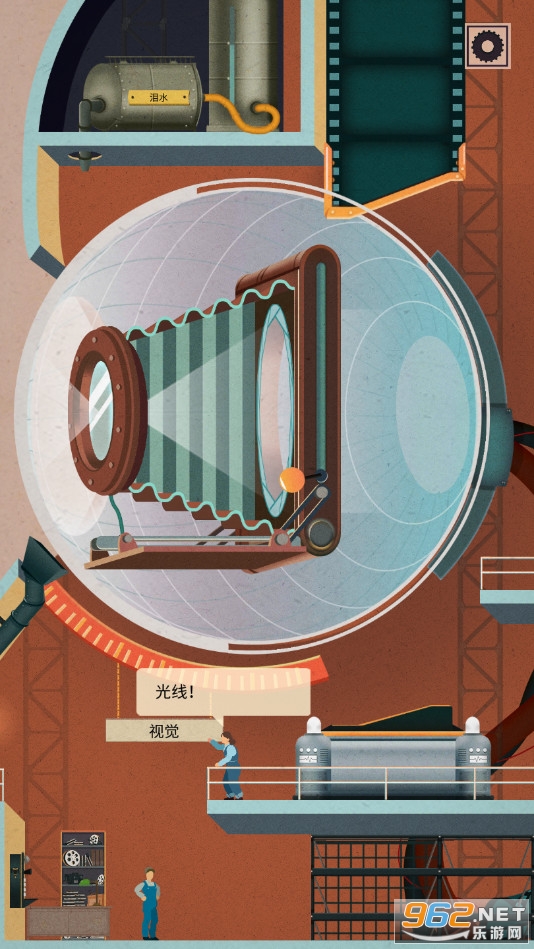 玩家戳屏幕来观赏工人们运转机器:用滑轮抬起眼皮,撑大瞳孔让光照进来;