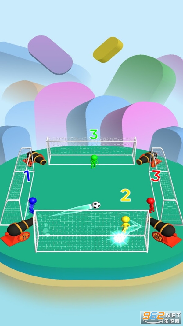 1、各就各位后等待炮台发射足球吧,注意观察足球的动向并且做出反应;