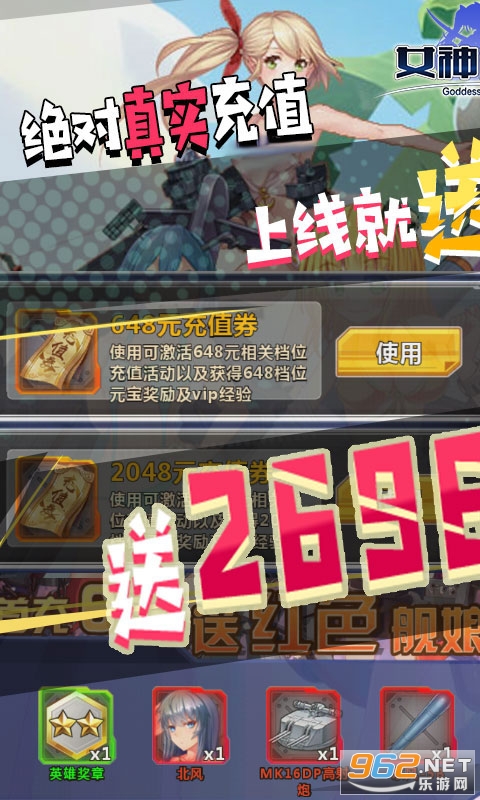 《女神帝国送2696充值》给玩家们带来了一款上线就送充值的福利游戏,大家可以在这里享受到日系军事战争题材手游,让各位玩家们在女神帝国中培养女神一起来开启海上战争,海量福利助力来征服海域!