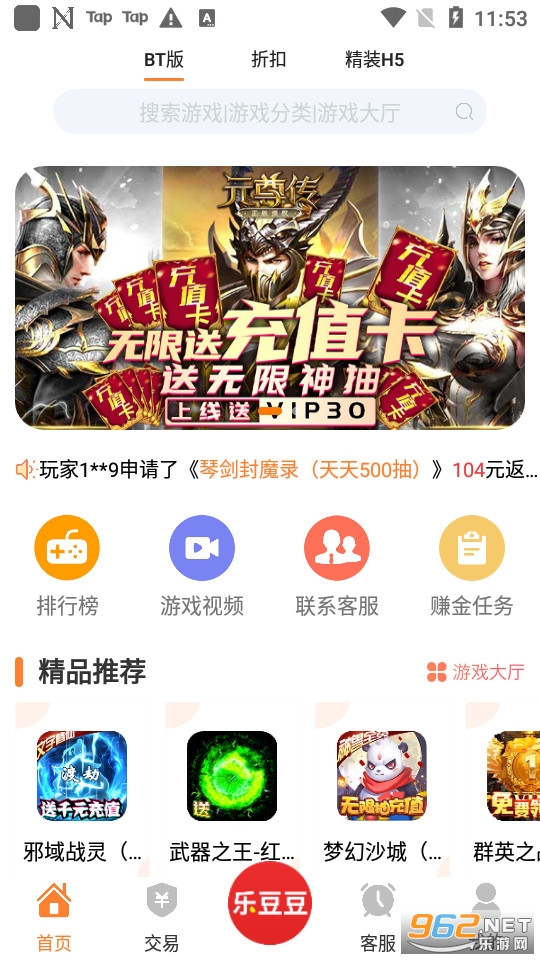 乐豆豆游戏是中国领先的手游福利平台,充值自动打折,折扣低至3折,上线送VIP,免费领元宝,独家福利礼包等,变态手游盒子中福利最好的游戏盒子,绝对玩手游必备神器!