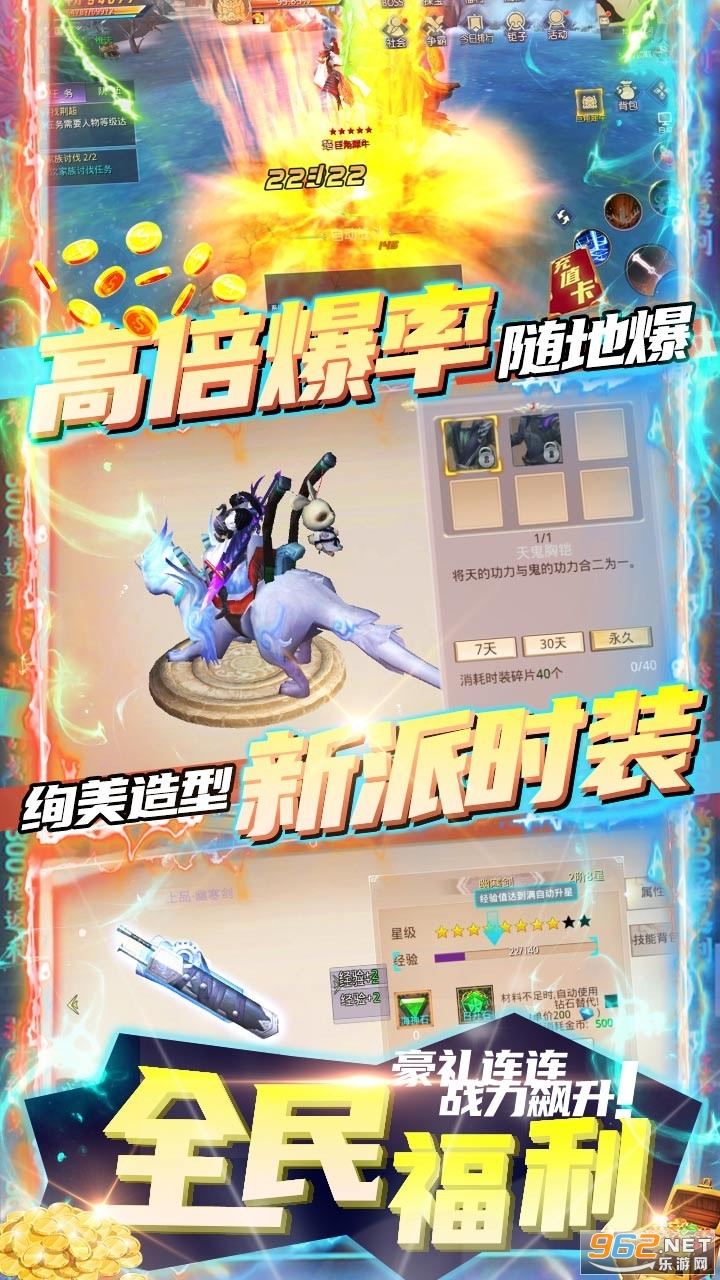 2、武器宝物等着你搜集,也有最顶尖的史诗套服让你拥有更恐怖的能量,作战起來更精彩;
