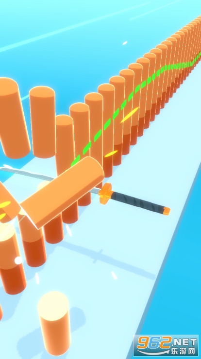 《砍掉一切游戏最新版》是一款休闲敏捷闯关小游戏,游戏中玩家要挥舞着一把唐刀去砍东西,不是乱砍一通哦,你要让你的唐刀沿着虚线来滑动劈砍,轨迹没有偏离就是绿色的,偏离虚线的颜色就会向红色变化,时刻调整唐刀的位置。