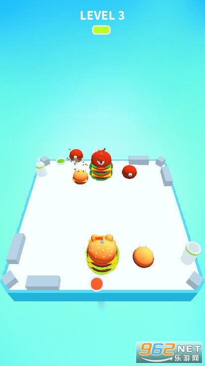《汉堡人淘汰赛小游戏》是一款汉堡pk弹射对抗游戏,游戏中玩家通过拖曳的方式发射你的汉堡,让你的汉堡去撞击对手汉堡,将它撞下擂台,游戏采用的回合制玩法,你要尽快在你的回合内干掉对手,赚取金币,使用金币来合成解锁更多的汉堡。