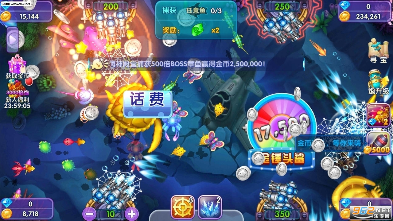 超多BOSS,超多大鱼,升级炮弹一网打尽,高倍金币滚滚来!