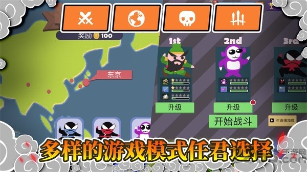 3、有多种模式可以去选择,还有多种忍者可以去解锁体验,更有独特的升级系统