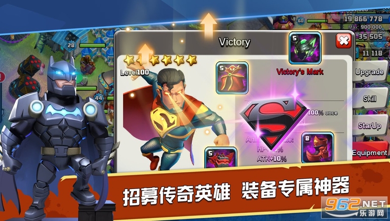 丰富的英雄养成系统,成就只属于你的英雄传奇。每日登录游戏,免费召唤普通、稀有、史诗、传说英雄。英雄升级提升基本属性,英雄升星大幅增强战力,英雄技能发掘隐藏天赋,英雄觉醒解锁炫酷形象。快来体验吧!