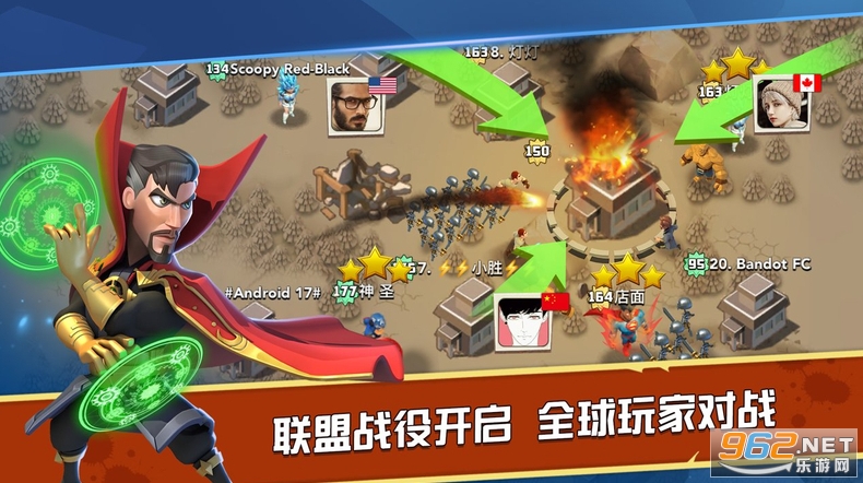 1、在这个末日的时代中,拥有着超多的英雄人物任你选择,你将需要保护好自己的家园并进攻别的玩家。