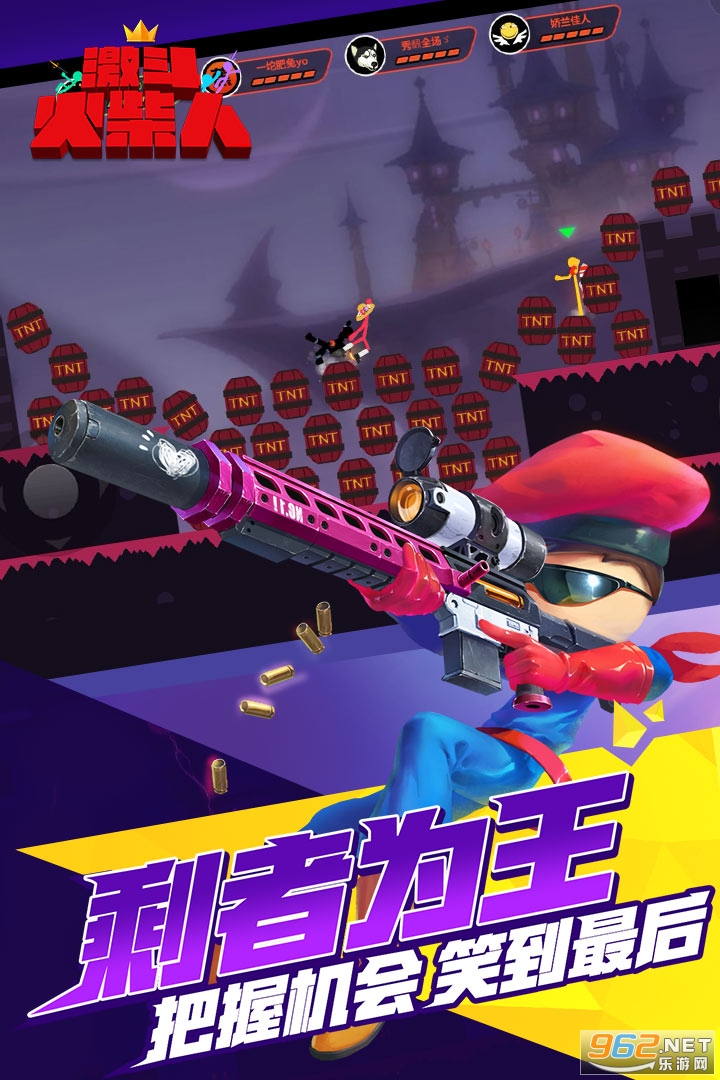 趣味的火柴人乱斗游戏,玩家将和其他小伙伴一起随机出现在一个场景中,注意灵活走位去拾取出现的武器,利用这些武器消灭其他对手,存活到最后,喜欢的朋友可以下载试试。
