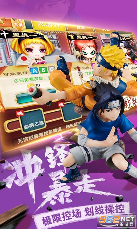 1、经典熟悉的火影角色等待玩家招募收藏,奖励喜欢的人物组合培养成强悍的队伍;