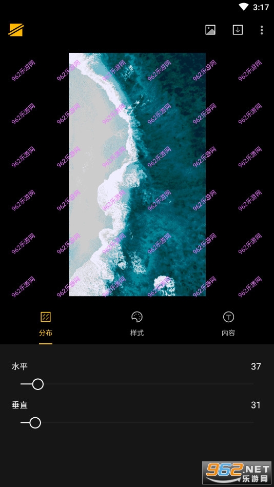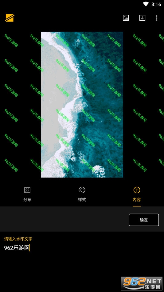 3、布局:支持水印间的横竖间隔,自动重复铺满整张图片。