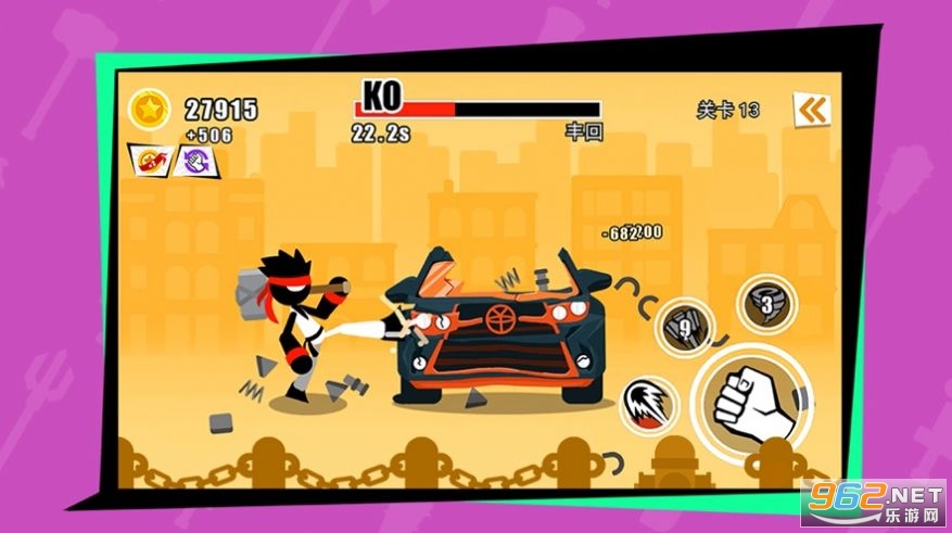 开启你的一系列连招,争取在最快时间内,将眼前的汽车打得粉碎。