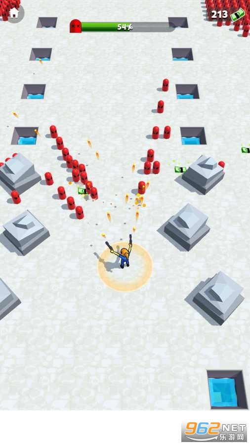 1、在圆圈中心站立并且射击周围的敌人,你的目的是干掉他们。