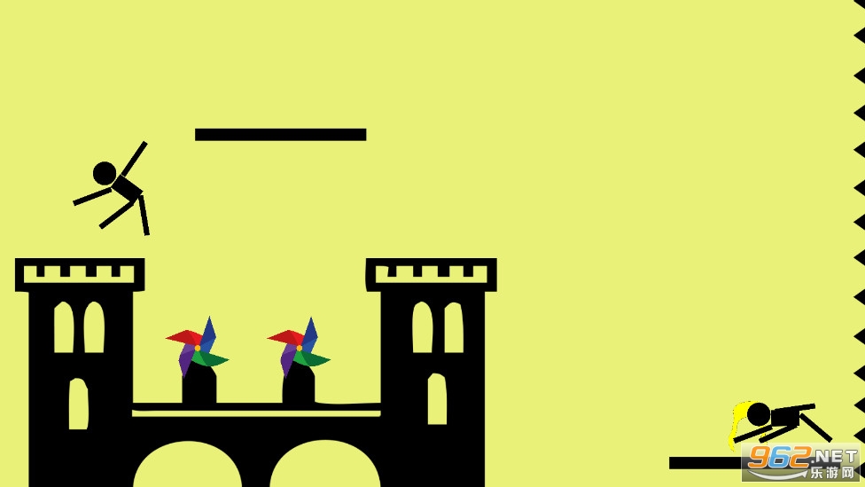 游戏的操作比较的简单,但是很容易一不小心就会挂掉,你的控制要细微一点,不然你就很难来到长发火柴人身边,甚至长发还会死