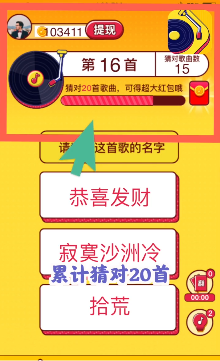 一共有9首的歌曲挑战,并且每次的挑战都不相同,玩家需要通过听音乐找出正确的歌名,并且在一堆散乱的字中,拼凑出正确的歌曲名称。