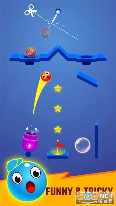 剪断绳索并将球滚动到孔中。棘手的绳子难题将挑战您的大脑。用手指剪断绳索,球将滚入孔中并更改标志的颜色。剪绳游戏是一种在每个级别都充满乐趣,吸引力和独创性的礼物。