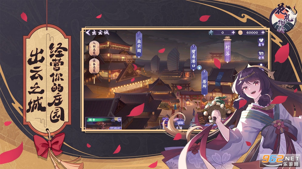 这是属于你的庄园,在这里你可以从庄园中获取商品的原材料,可以在神社祭拜神明,可以在密藏山开拓矿洞,可以在工艺坊加工商品,最后在贸易港口出售货物,为恢复出云阁的辉煌提供资金。