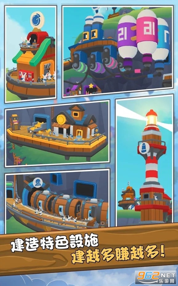 一只只可爱的小兔子在童话般的天空之城中不断的完成建设,游戏的操作简单容易上手,玩家需要控制小兔子建造出各种各样不同的建筑,完成各种各样的挑战,打造出一座梦幻般的天空之城,游戏的玩法轻松有趣,推广价喜欢休闲游戏的玩家。