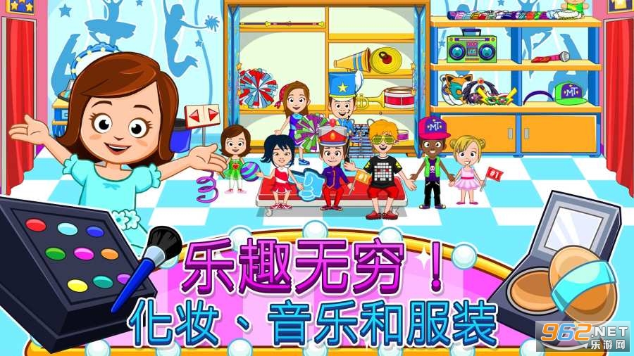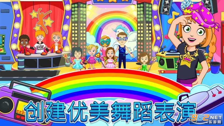 欢迎来到舞蹈学校,这是你的城镇必备场所。练习芭蕾舞课程,整装待发,加入拉拉队班级,准备你的舞蹈表演并自定义舞台。探索所有趣味场所、制服和乐器。与所有你喜爱的My Town新角色一起玩吧!