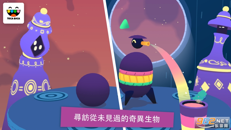 1、精致卡通游戏画风,神秘的色彩小屋等你来探索,高度自由的玩法探索中触发各种剧情。