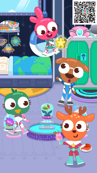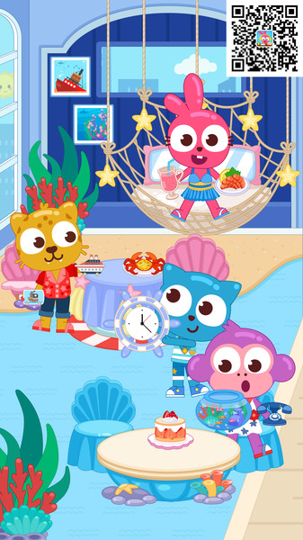 学习时间!坐在课桌前认真学习有趣的知识!试着在黑板上解答算术题!观看投影仪播放的奇妙动物世界!还有神奇的实验室,带上护目镜做实验!看看有什么不一样的反应!打开储物柜,认领自己的格子!