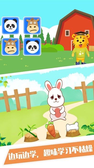 儿童学动物游戏是一个专门为了我们的小朋友用户而特别开发打造的儿童教育类游戏,游戏中采用了大量的卡通元素设计,小小玩家们能够在里边玩边学,体验欢乐时光!