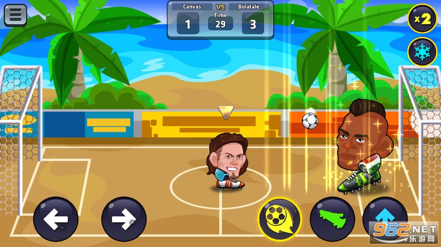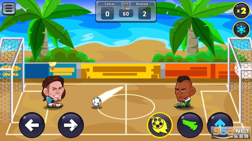 很简单的游戏操作方式,轻松上手,玩起里比较有趣味,玩家只能用头去控球,射门,还会出现很多很有意思的道具,利用这些道具帮助你吧