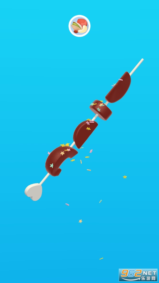 3.做零食的过程很简单。玩家只需要切下他们需要的原料,然后把它们串起来。